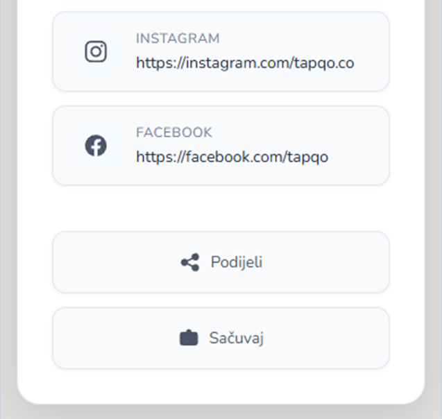 Tapqo digitalna vizit kartica je najjednostavniji način da podijelite svoje kontakte i poslovne informacije. Bez komplikacija, bez instalacija – samo približite karticu telefonu i sve je gotovo za nekoliko sekundi.