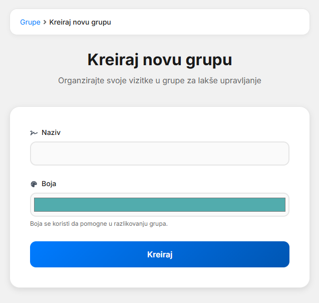 Unutar kompanije možete imati više digitanih vizit kartica na jednom profilu i raspoređivati uposlenike po grupama.